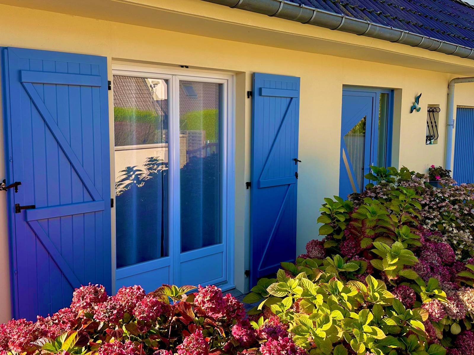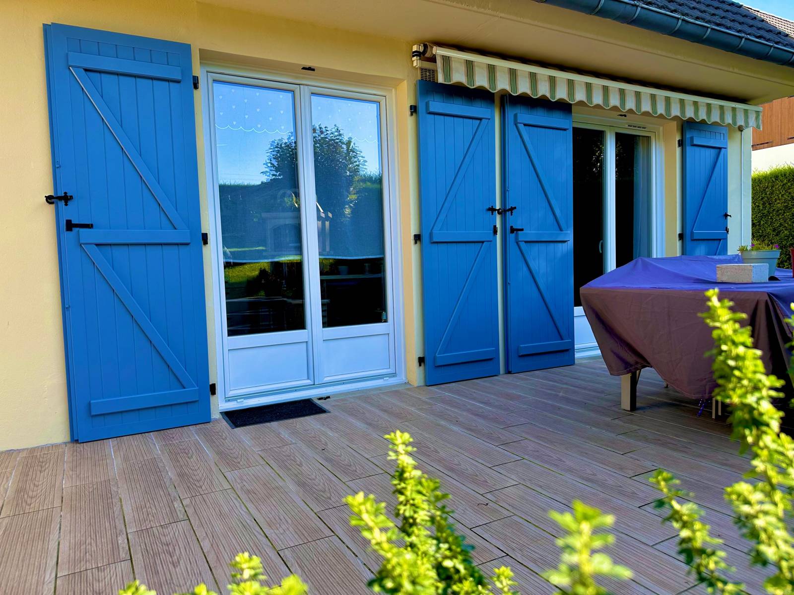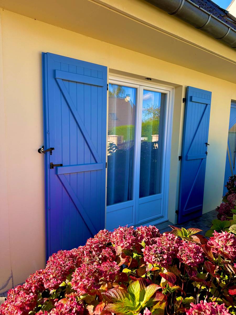 Esthétique : les volets battants en aluminium offrent une large palette de couleurs et de finitions pour s'adapter à tous les styles architecturaux. Comme en témoigne notre récente réalisation sur le secteur de Beauvais, le modèle "Barres et écharpes" dans un élégant bleu RAL 5014 apporte une touche de charme indéniable à cette habitation.