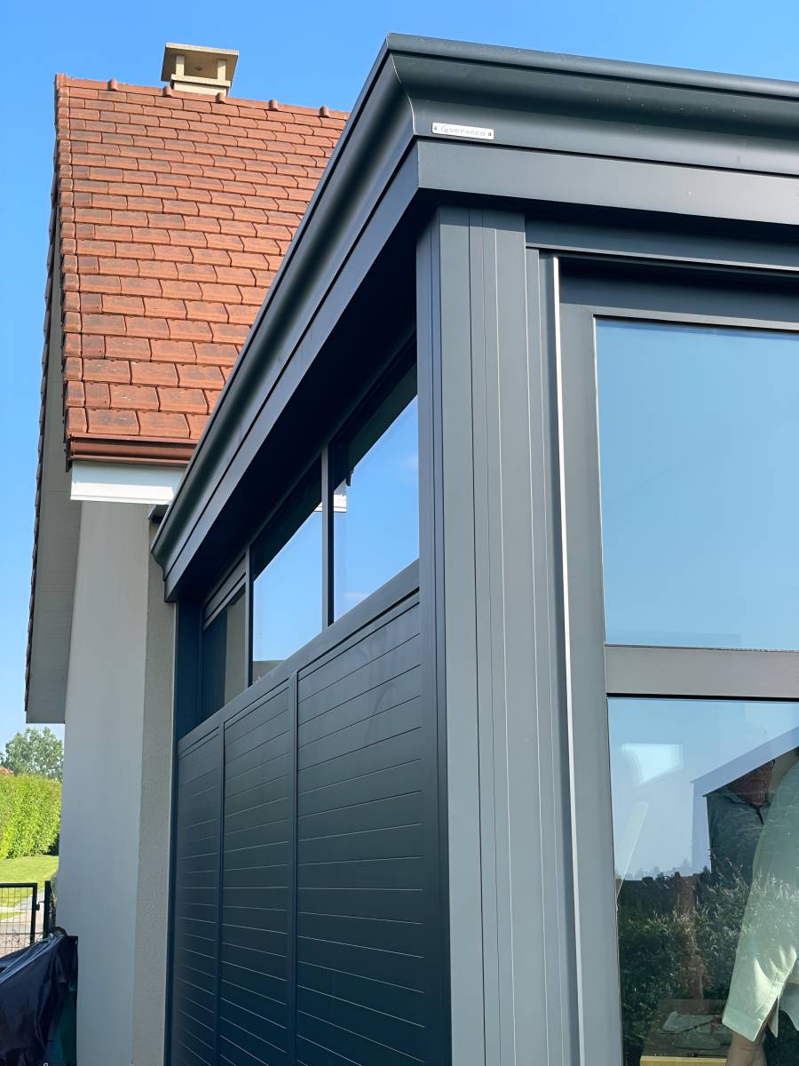 La véranda Onyx de VERANCO se distingue par son style contemporain et ses caractéristiques techniques innovantes :