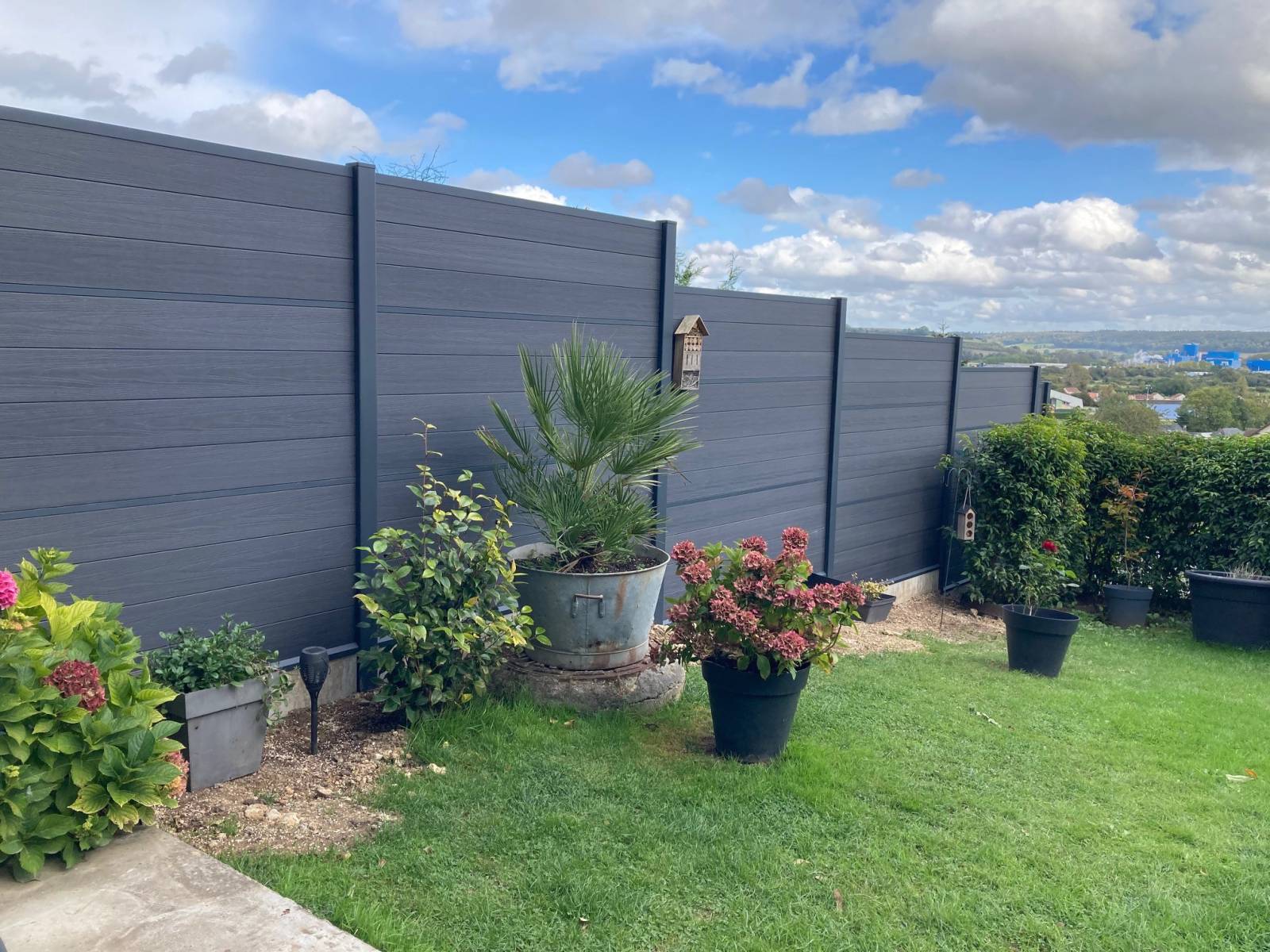 L'installation d’une clôture claustra en composite, soutenue par des poteaux en aluminium. Ce type de solution est particulièrement adapté pour les clients cherchant à délimiter leur propriété et conserver leur intimité. Une solution parfaite pour les maisons mitoyennes.