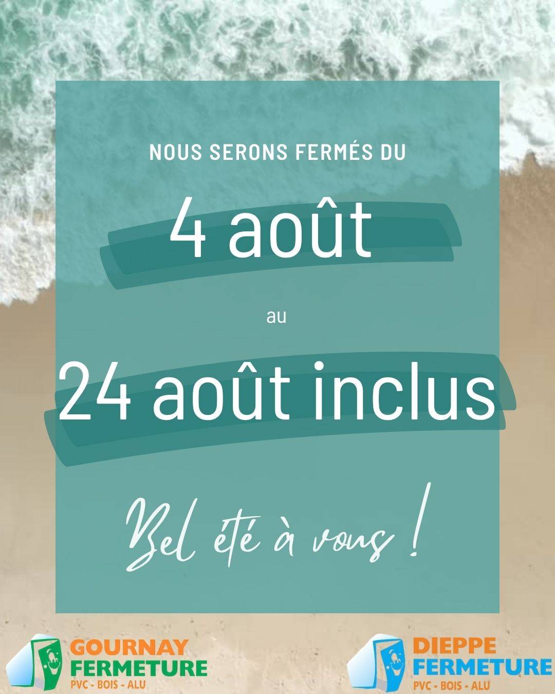 L’heure est venue pour nous de mettre les tournevis en pause et de troquer nos visseuses contre des crèmes solaires. Eh oui, Gournay Dieppe Fermeture sera fermée pour congés du 4 août au 24 août inclus !