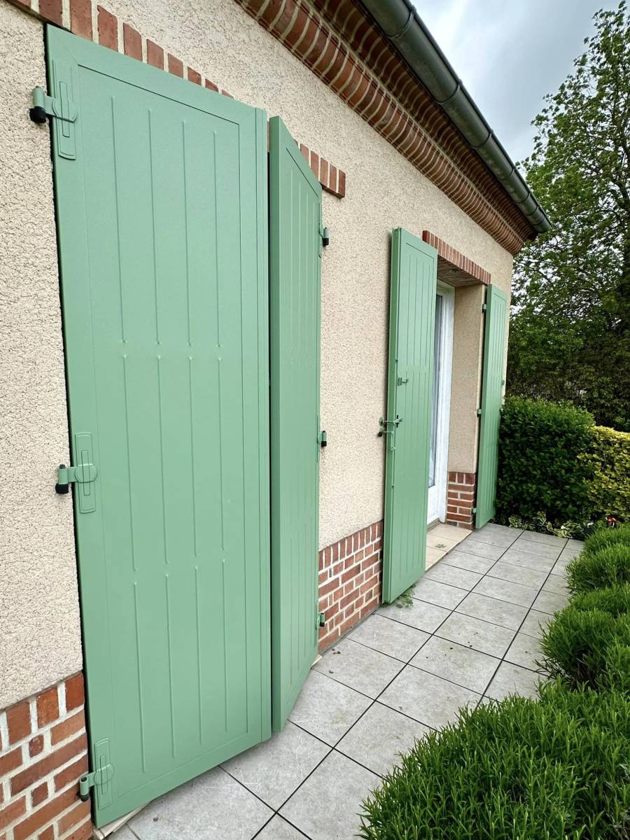 Cette installation de volets battants aluminium offre une solution esthétique et fonctionnelle pour nos clients. Le choix de l'aluminium assure une résistance optimale aux intempéries et une facilité d'entretien incomparable. De plus, l'épaisseur de 37 mm et la technologie thermo garantit une isolation thermique performante, contribuant ainsi à l'efficacité énergétique de l'habitation.