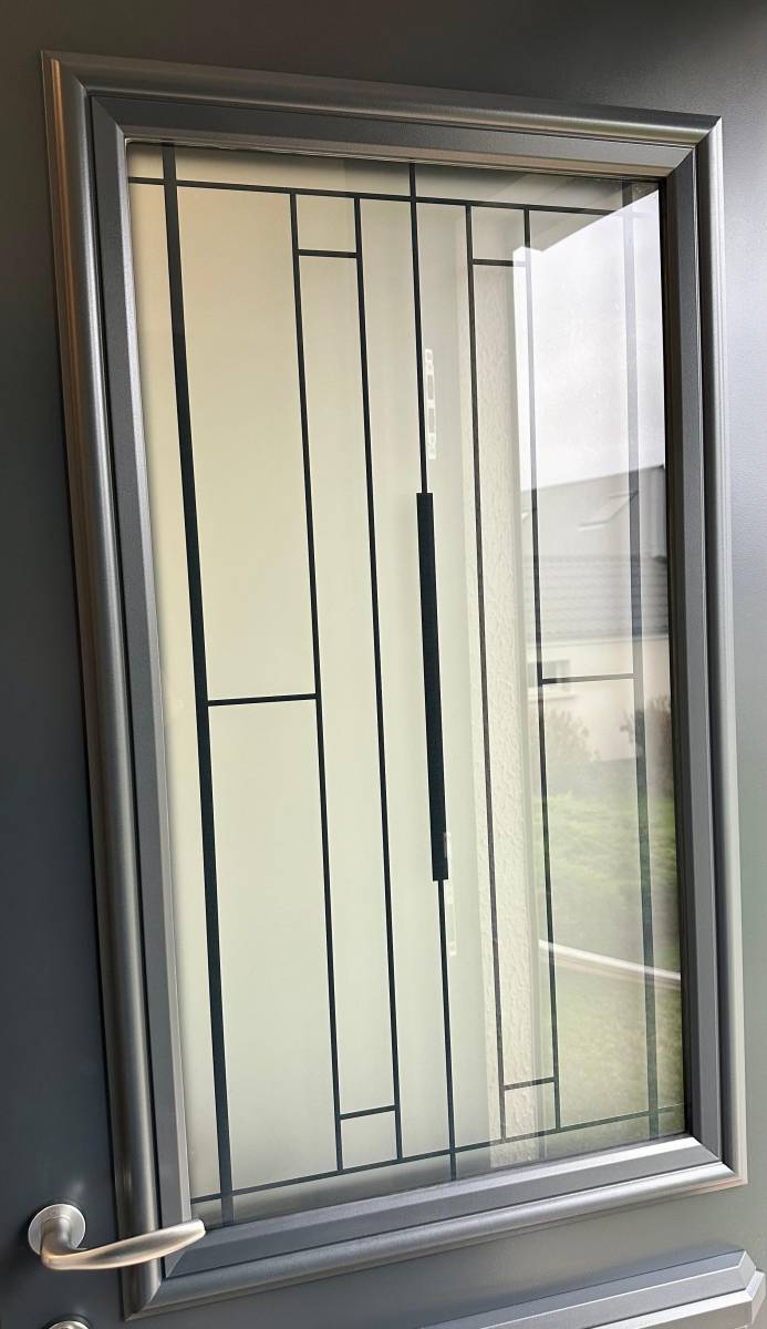 Le choix s’est porté sur le modèle SEGOVIA‑1 de la marque Zilten, reconnu pour sa robustesse et sa durabilité. Dotée d’un ouvrant de 48 mm d’épaisseur, cette porte garantit une excellente isolation thermique. Son double vitrage sablé classe 2 assure un bon apport lumineux tout en préservant l’intimité. La pose en dépose totale a permis d’optimiser l’étanchéité et le rendu esthétique.