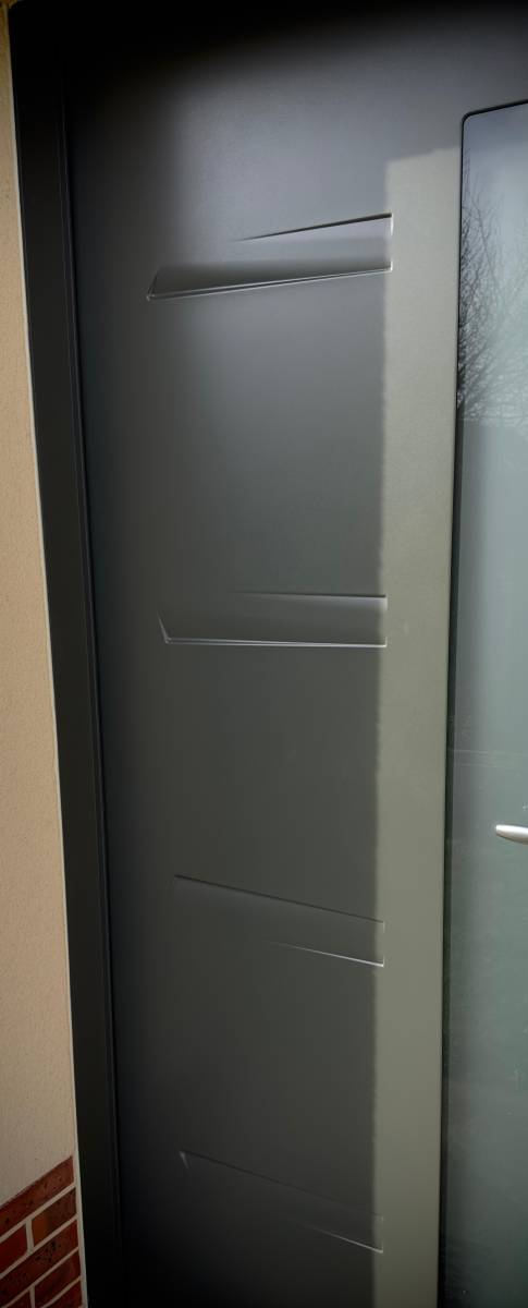 Sur ce chantier la porte AKITA 20 vous est présentée en coloris GRIS RAL 7022 texturé, offrant une apparence homogène et contemporaine. Le laquage personnalisé permet d'ajuster la teinte selon vos goûts, s'intégrant harmonieusement à votre demeure.