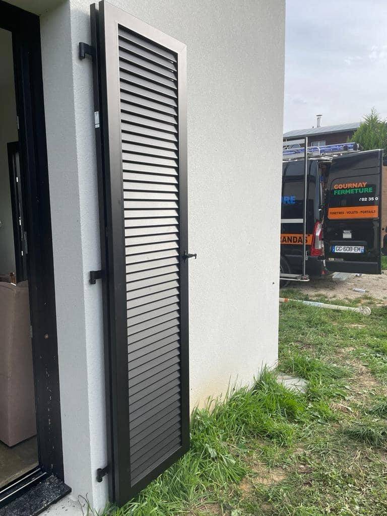 Pour nos clients de Varengeville-sur-Mer, nous avons sélectionné les volets battants ajourés au style persiennes de la marque française Volpro, reconnue pour son savoir-faire et sa durabilité sur la côte normande.